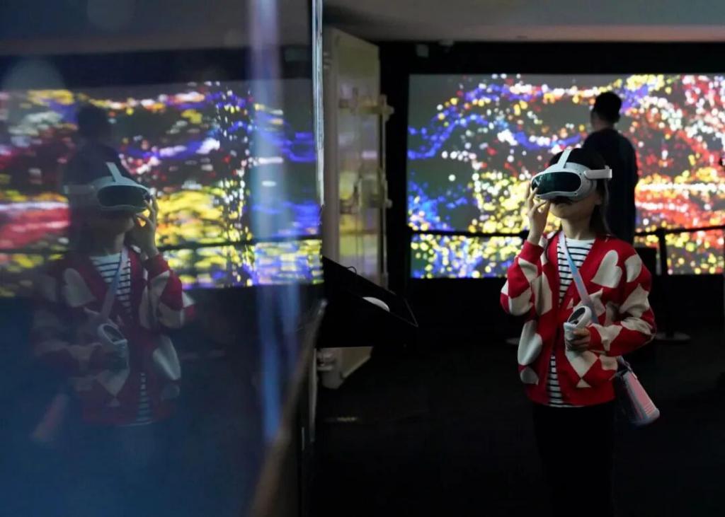 小朋友在首届中国数字艺术大展上进行互动体验 / 新华社记者韩传号 摄