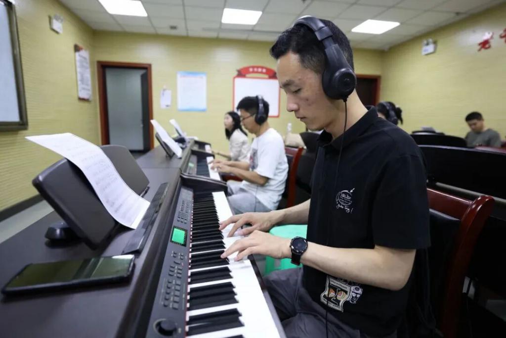 学员在贵州省贵阳市观山湖区青年夜校喀斯特广场校区学习钢琴 / 新华社记者刘续 摄