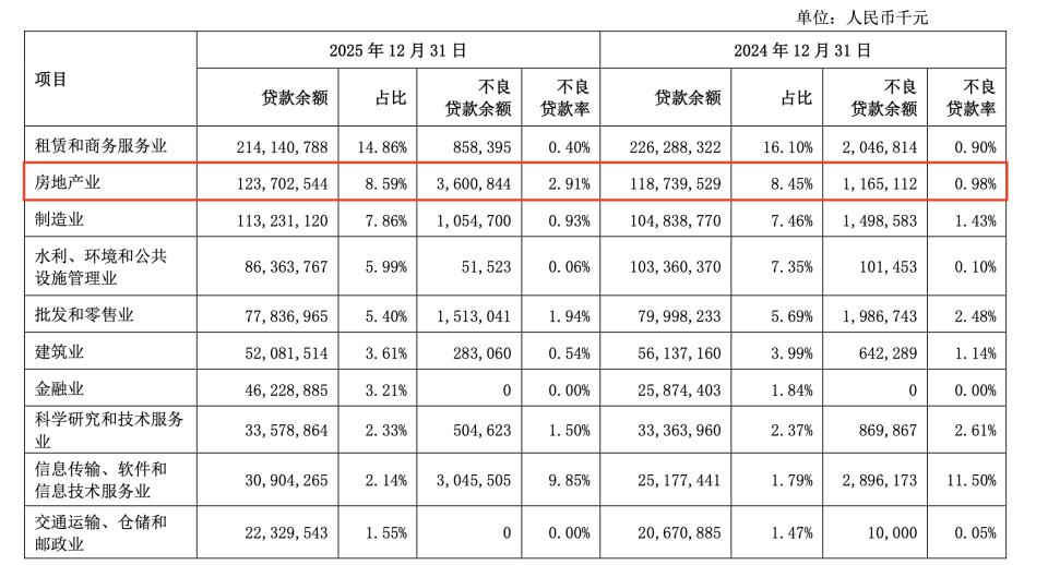 值得注意的是,房地产不良率有明显上升,从 2024 年末的 0.98% 增加至 2.91%,不良贷款余额从 11.65 亿元增加至 36 亿元,增幅达 209.01%。