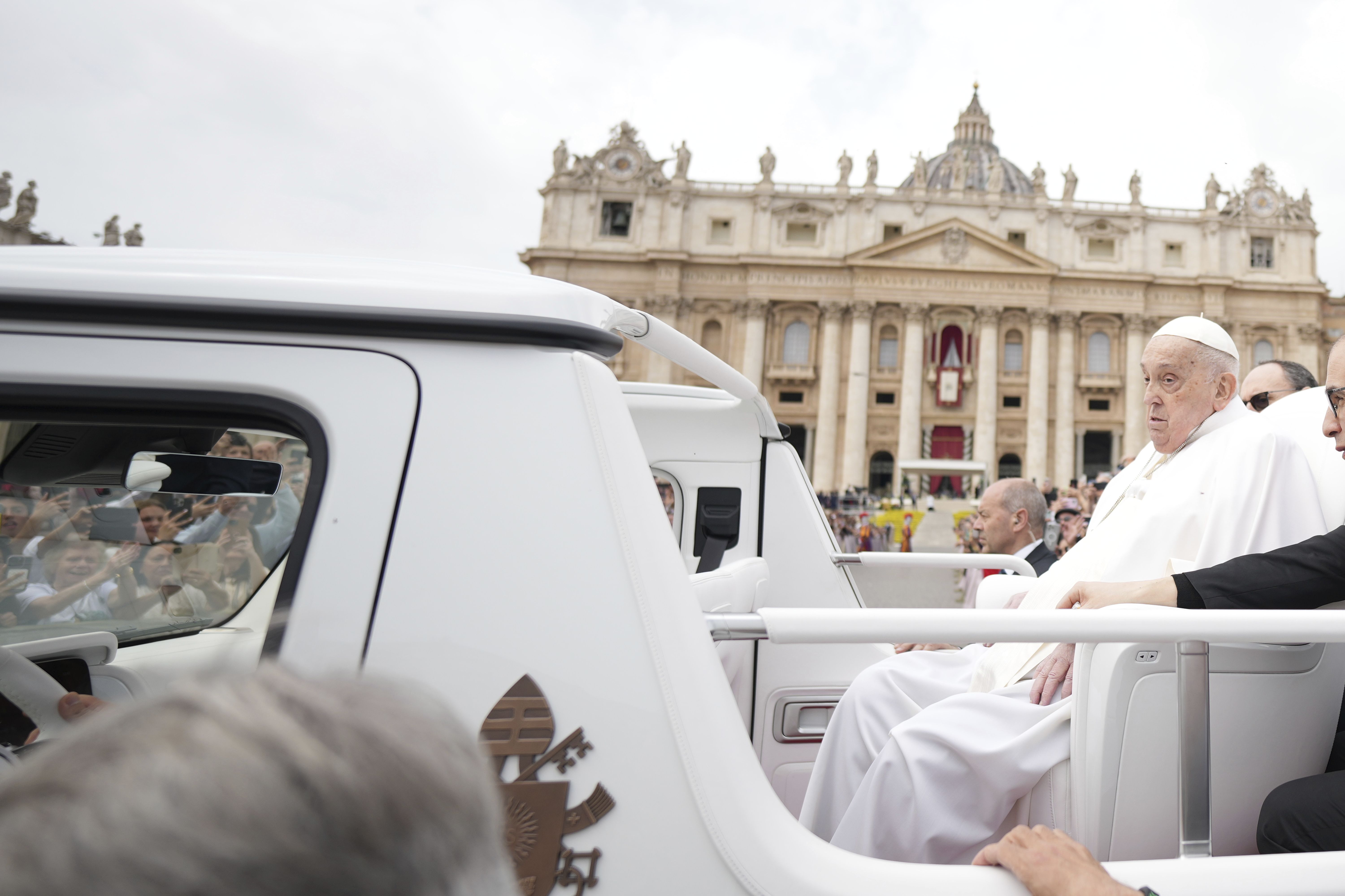 复活节,方济各教皇从恢复期中走出来,乘坐教皇专车巡游,引来欢呼