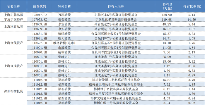 需要注意的是,私募的持仓数据是动态变化的,目前最新的持仓情况或与相关可转债此前披露的数据已有新的变化。另外,近期以来随着关税风波影响下股市的波动,可转债价格整体亦有回调。
