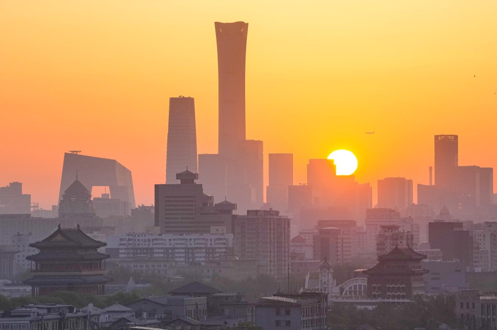 这是4月15日拍摄的北京日出景象。 新华社记者 陈晔华 摄