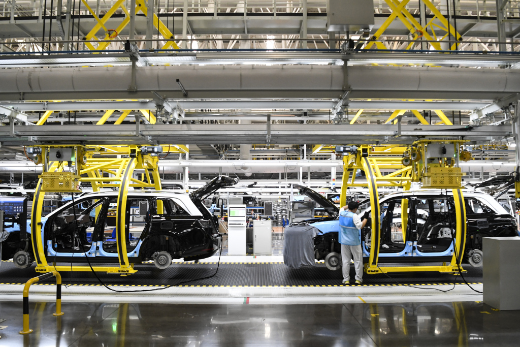 这是在位于重庆市两江新区的赛力斯汽车超级工厂拍摄的智能化生产作业现场(2024年6月7日摄)。 新华社记者 王全超 摄