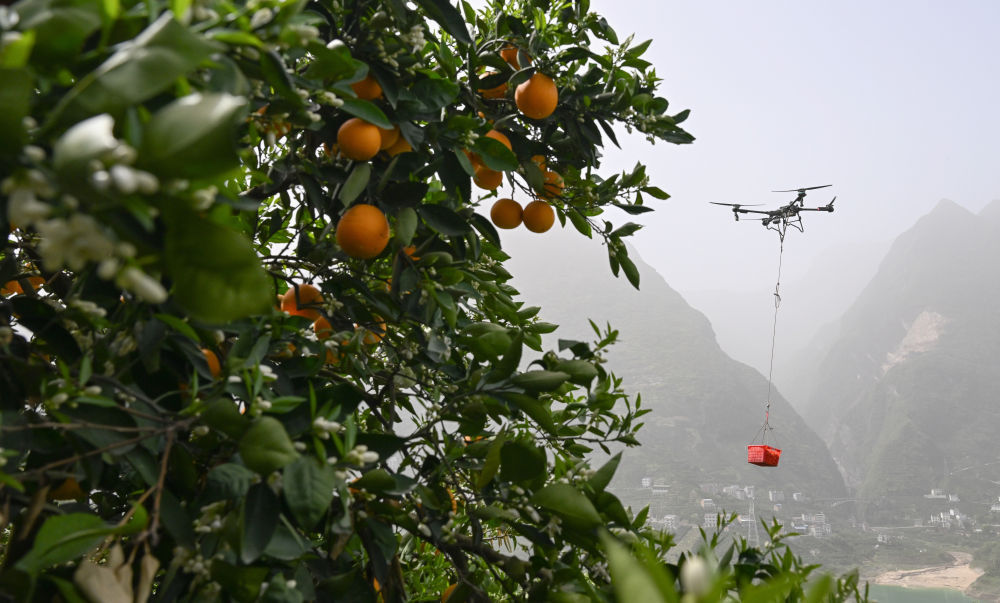 据新华社近日报道,时下正值秭归“伦晚”脐橙的采收旺季。在归州镇彭家坡村,种植户冯立手持遥控器,操纵载重60公斤的农用无人机,从山坡的橙园腾空而起,几分钟就将鲜果投送至山腰的物流集散点,“过去要雇十几个人背的橙子,现在两个‘飞手’就能完成。”
