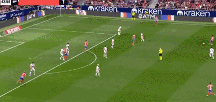 第45分钟,马竞右侧进攻,肋部位置无人盯防的德保罗观察后送出精妙传中,加拉格尔后插上抢点头槌破门,马竞2比0领先。