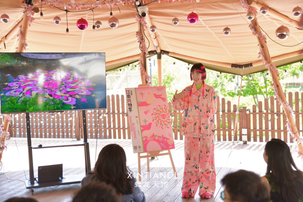 自2023年以来,上海蟠龙天地每年周年之际都会通过“江南风物季”,聚焦一项江南传统风物,以艺术共创与场景焕新,唤醒江南在地与海派生活的文化基因。2024年曾推出“江南风物季·织造篇”,聚焦上海非遗盘扣技艺的新生。