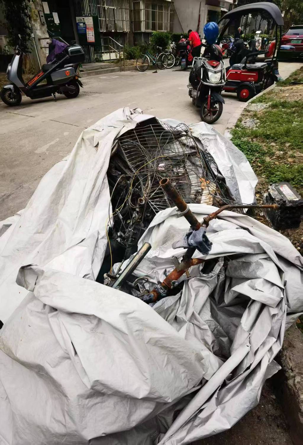 被烧毁的电动自行车