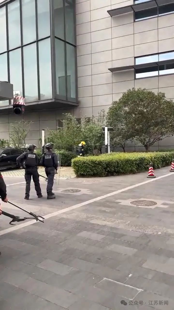 野猪穿过江苏电视台楼前广场,被抓捕后送往红山森林动物园