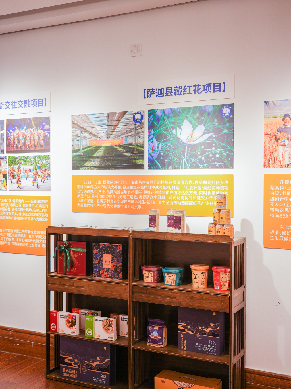 展览中还特别设置了上海天文台射电望远镜、江孜县氆氇手工艺、拉孜县吉角村智慧社区、定日县珠峰景区等不同领域援藏项目的专栏介绍,通过文字与影像结合的方式,记录当地30年来的发展变迁及沪藏携手奋斗的生动写照。