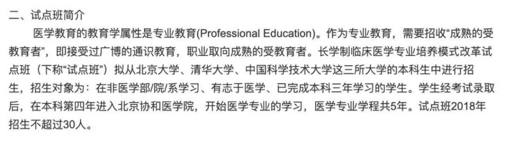 实际上,协和在 2018 年就已经开始试点,当时名为「长学制临床医学专业培养模式改革试点班」。