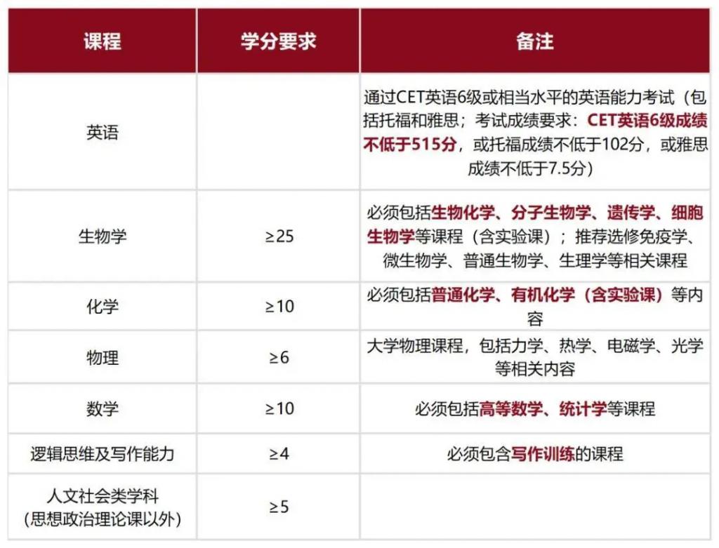 入学课程要求(图源:北京协和医学院)