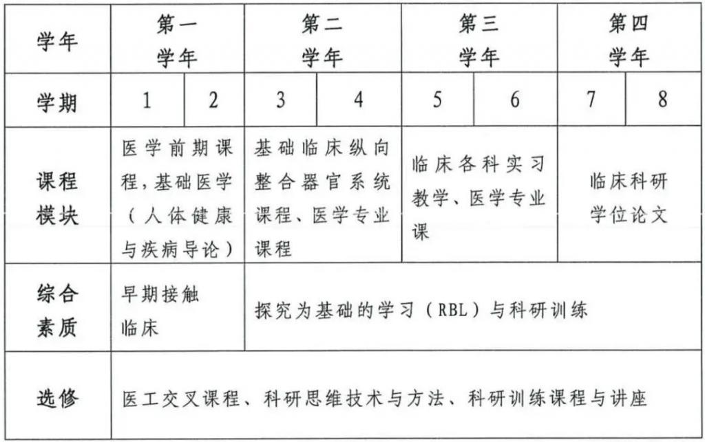 《上海交通大学医学院临床医学专业 4+4 培养方案》(图源:上海交通大学医学院)