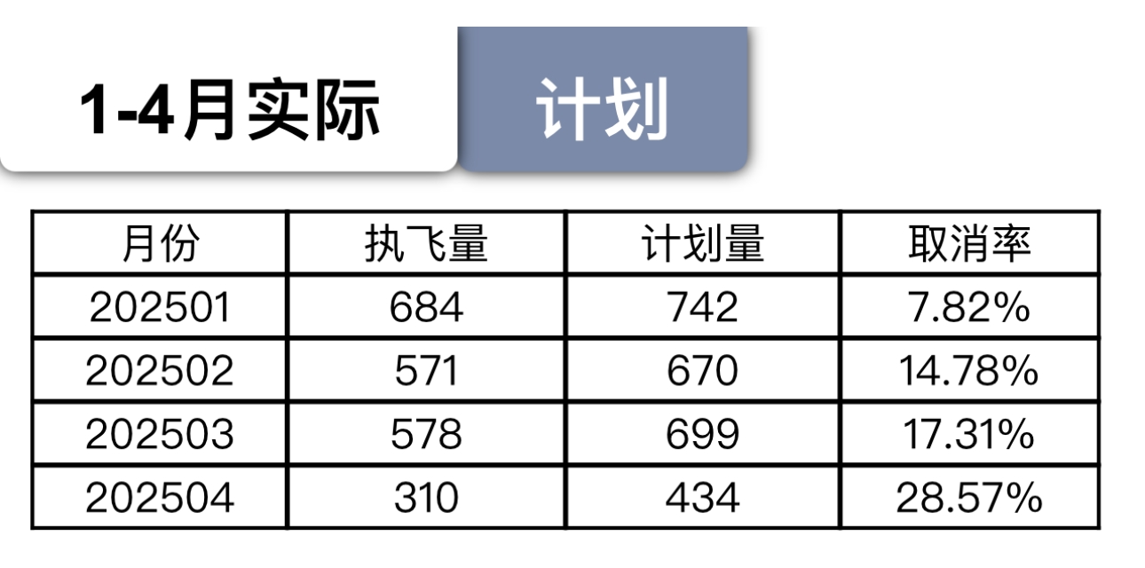 整体来看,自2025年至今的四个月时间,幸福航空航班取消率逐月递增。航班管家向界面新闻提供的数据显示,1月份-4月份,幸福航空航班取消率分别达到7.82%、14.78%、17.31%和28.57%。