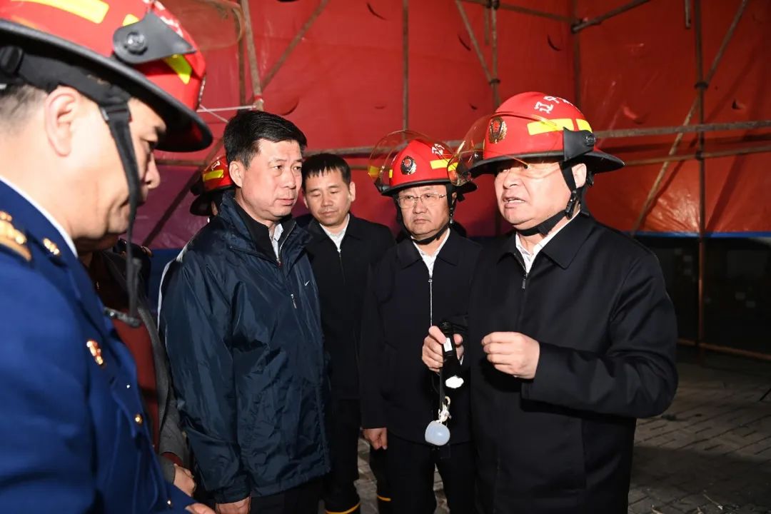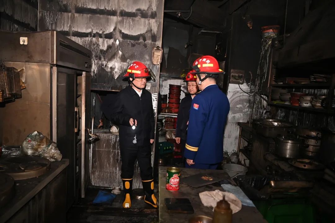 辽宁省委书记、省人大常委会主任郝鹏,省委副书记、省长王新伟察看房屋结构、过火面积,深入了解救援处置、事故原因调查进展等情况。