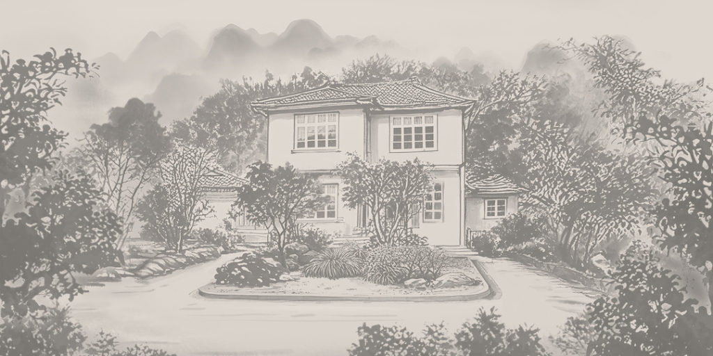 展陈设计中的栖霞岭31号手绘图,黄宾虹晚年生活过的故居,如今的黄宾虹纪念馆