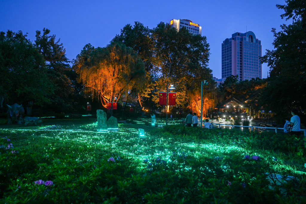 2025年4月29日,上海静安公园,《松弛指南》沉浸光影秀。澎湃新闻记者 朱伟辉 图