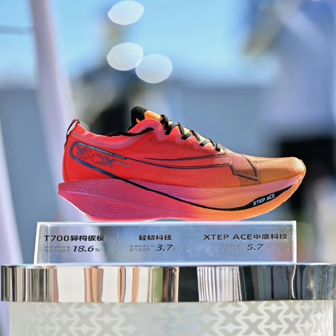 特步品牌的跑鞋大多在400元至700元区间,部分针对专业运动员和精英跑者的竞赛跑鞋已经在1000元上下,执行专业影响大众的产品策略。如今的跑步市场,千元以上的价位,HOKA、昂跑、萨洛蒙、Brooks等新兴品牌正在混战;以匹克、鸿星尔克为代表的国产品牌主打性价比,下探着碳板跑鞋下沉市场的价格边界。价格处于中间地带的特步跑鞋,想要成为消费者的首选并不容易。这也是为什么特步想用索康尼和迈乐去进攻自己相对没有那么熟悉的高端市场。