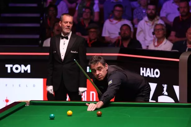 罗尼·奥沙利文在世界斯诺克锦标赛上疯狂地击打桌子,图标变成了红色