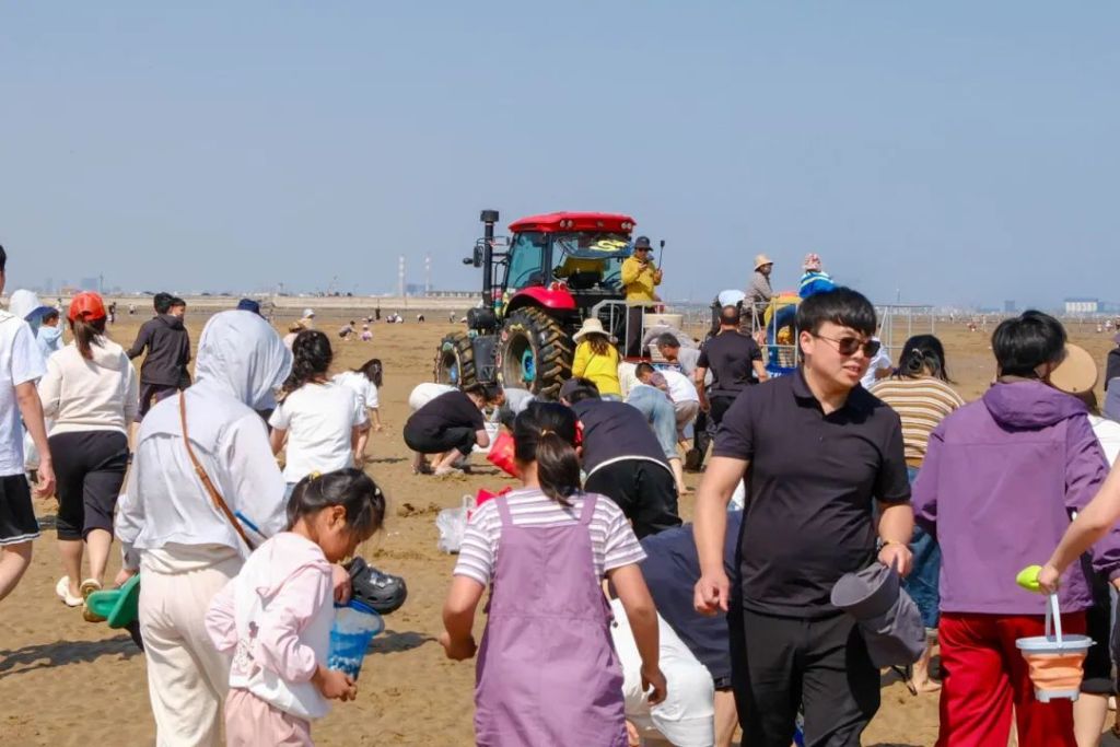 “景区野生的蛤蜊非常多,但是生长的地方有些深,游客不太好挖出来,怕外地游客挖不到,就组织了这样一个活动。给游客提供情绪价值,来到之后不能空手而归。”
