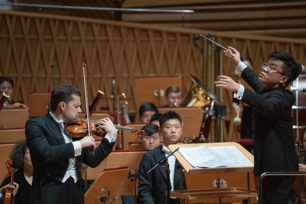 随后,贝尔格的《小提琴协奏曲》引领听众步入了一个更加深邃、内敛的音乐世界。这部作品不仅是十二音体系与传统功能和弦相结合的典范之作,更蕴含着作曲家对年仅十八岁便谢世的少女玛侬的深切哀思。作为本场音乐会的双主角之一,出生在拉脱维亚的朱利安·拉赫林不仅在小提琴独奏中展现了非凡的技艺,更以其对东欧音乐的深刻理解和独到诠释,为整场音乐会增添了一抹亮色。他的演奏风格融合了德奥音乐的严谨与东欧音乐的热情,为听众带来了一场跨越地域与文化的音乐盛宴。处理贝尔格的《小提琴协奏曲》时,拉赫林以其深厚的音乐素养和细腻的情感表达,将作品中的每一个音符都雕琢得细致入微。他的演奏时而激昂如潮,时而温柔似水,生动地诠释了贝尔格音乐中的复杂情感与深刻哲理。甚至连安可曲巴赫的萨拉班德舞曲,似乎也用凝思般的气场呼应着先前的协奏曲,简直可以视作“乐队—独奏”双璧同台。