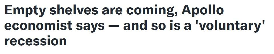 阿波罗全球管理公司首席经济学家托尔斯滕 · 斯洛日前警告,美国运输、物流及零售行业或将重现物资短缺,并伴随大规模裁员。
