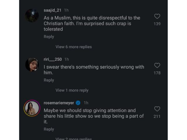 其他人则批评这条帖子不尊重人,尤其是考虑到教皇方济各最近去世,一位用户称这条帖子“令人作呕,完全无礼”。