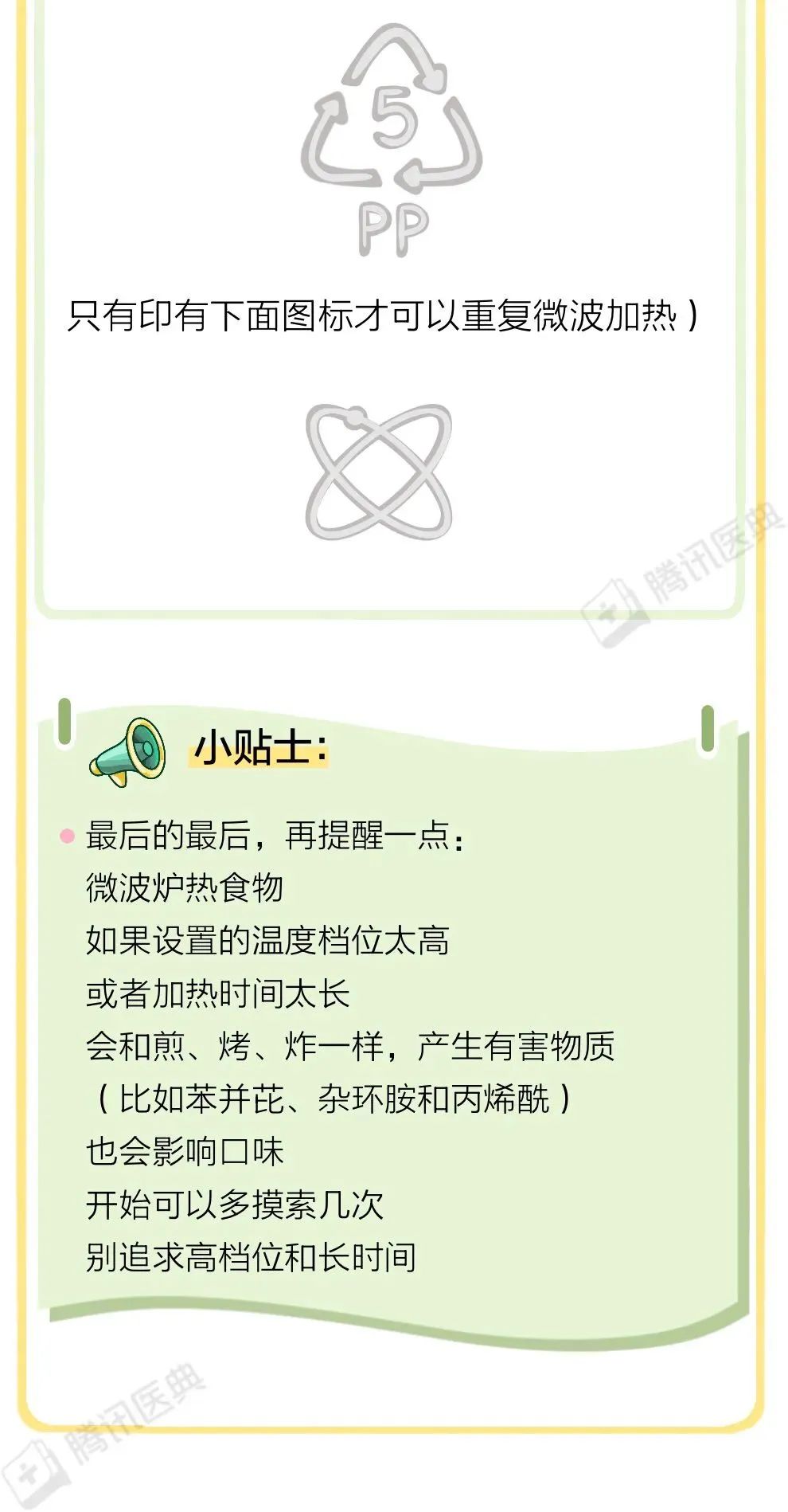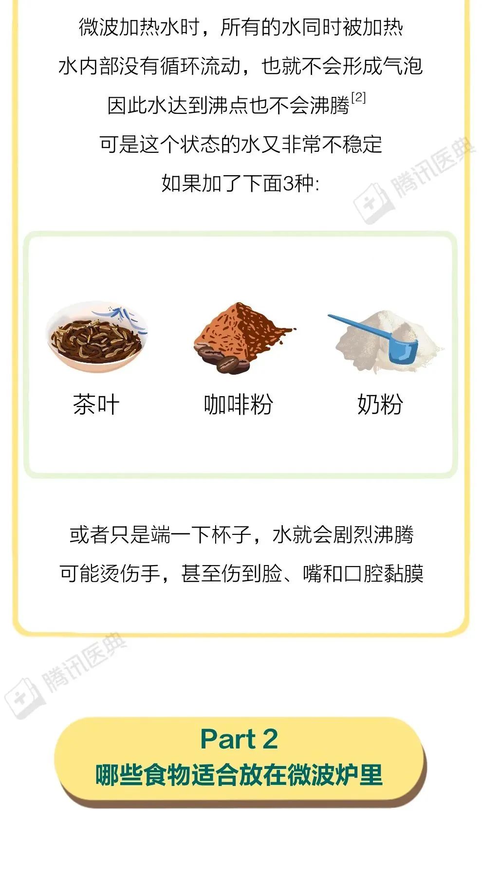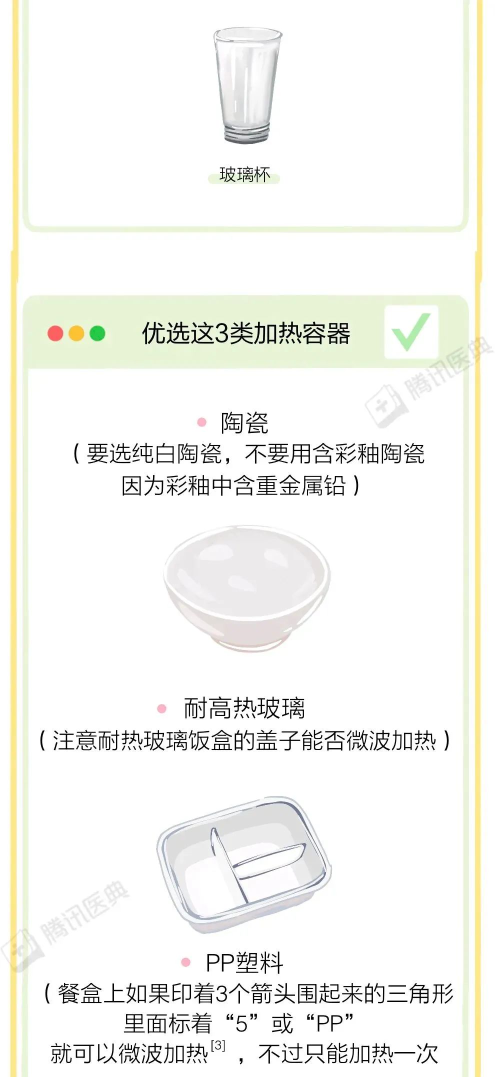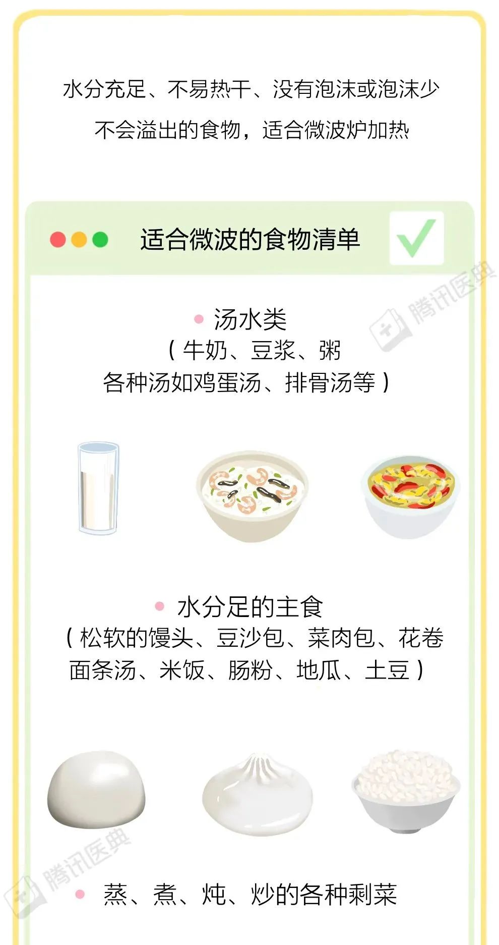 首页 > 生活 这 3 种食物,不要放进微波炉!第 1 个就大意了 原创 腾讯医典 腾讯医典最后划重点,7类东西不要放进微波炉: 1.有膜或有外壳的食物 2. 水分低的食物 3. 水 4. 含含金属的容器 5. 纸类容器 6. 微波专用之外的塑料容器 7. 任何不耐高温的玻璃容器 审核专家:谷传玲 注册营养师 参考文献*腾讯医典内容团队出品 相关阅读 原标题:《这 3 种食物,不要放进微波炉!第 1 个就大意了》 阅读原文