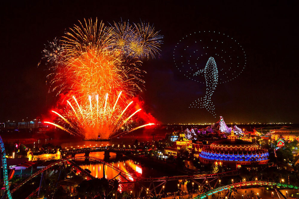 位于浦东的上海千古情景区迎来大客流。