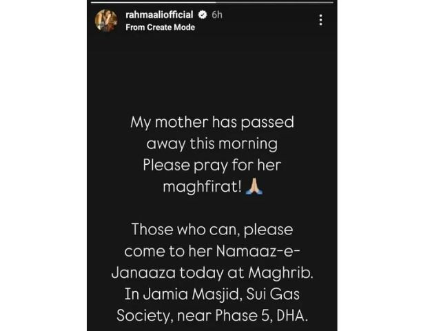 巴基斯坦女演员伊曼·阿里的家人宣布,她的母亲乌玛拉·阿比德·阿里去世。
