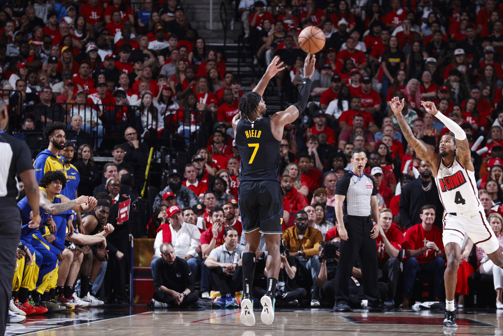 有意思的是,当抢七大战开始,真正左右比赛局势的球员是库里身旁的巴迪·希尔德和德雷蒙德·格林。比赛第一节,这两位球员就在外线火力全开,他们两人首节就各自命中两记三分球,希尔德在第二节更是在三分线外5投4中,半场独得22分。