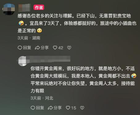 当天晚些时候," 媛媛 " 在评论区更新了自己最新的状态:" 感谢各位老乡的关注与理解。已经下山,无意冒犯贵宝地。宜昌来了 3 天了,体验感都挺好的,旅途中的小插曲也是正常的。"