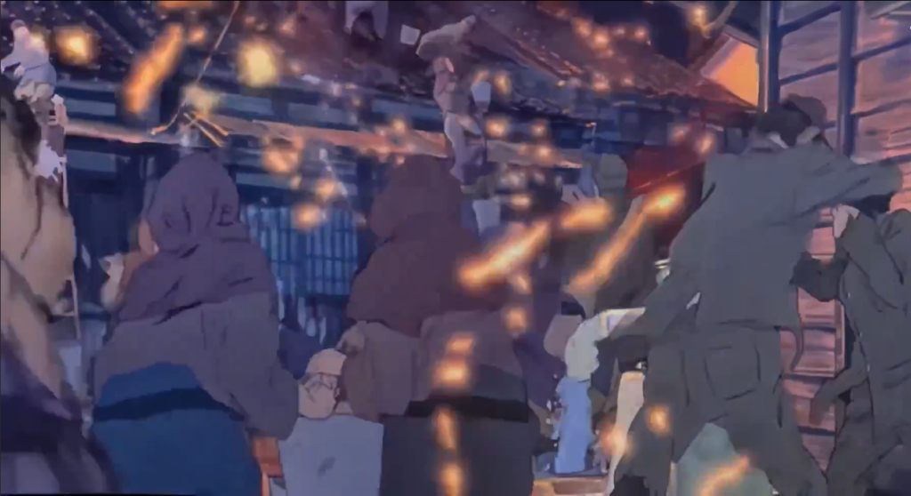 通过押山导演引入的“原动画”的处理,动画版《蓦然回首》临摹和延续了原作漫画的故事和画风,几乎完美实现了动画媒体对于漫画的顺应(adaptation)。然而与此同时,我们也不能忘记本作所展示出的“作为元动画的现代性”。