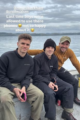 这位骄傲的父亲和他的两个小儿子一起去钓鱼(图片:Instagram / @davidbeckham)