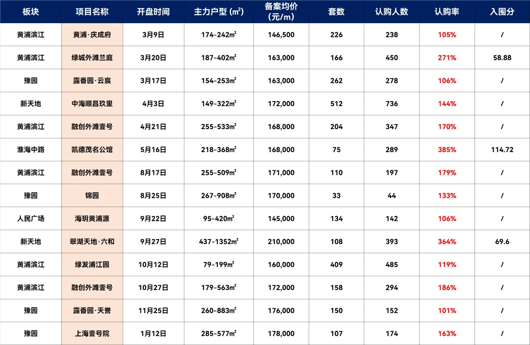 据微信公众号“同策豪宅”,过去两年,黄浦区以“碾压级”表现领跑上海豪宅市场。2024年,全区推出2847套新房,吸引4175组客户认购,整体认购率高达159%,最高入围分114.72分,多个项目开盘即“日光”。黄浦的“吸金力”源于其不可复制的核心地段、稀缺土地供应及历史文脉价值。
