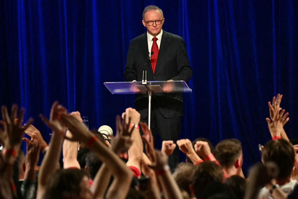 当地时间2025年5月3日,澳大利亚悉尼,澳大利亚总理阿尔巴尼斯在工党选举之夜活动上发表讲话。视觉中国 图