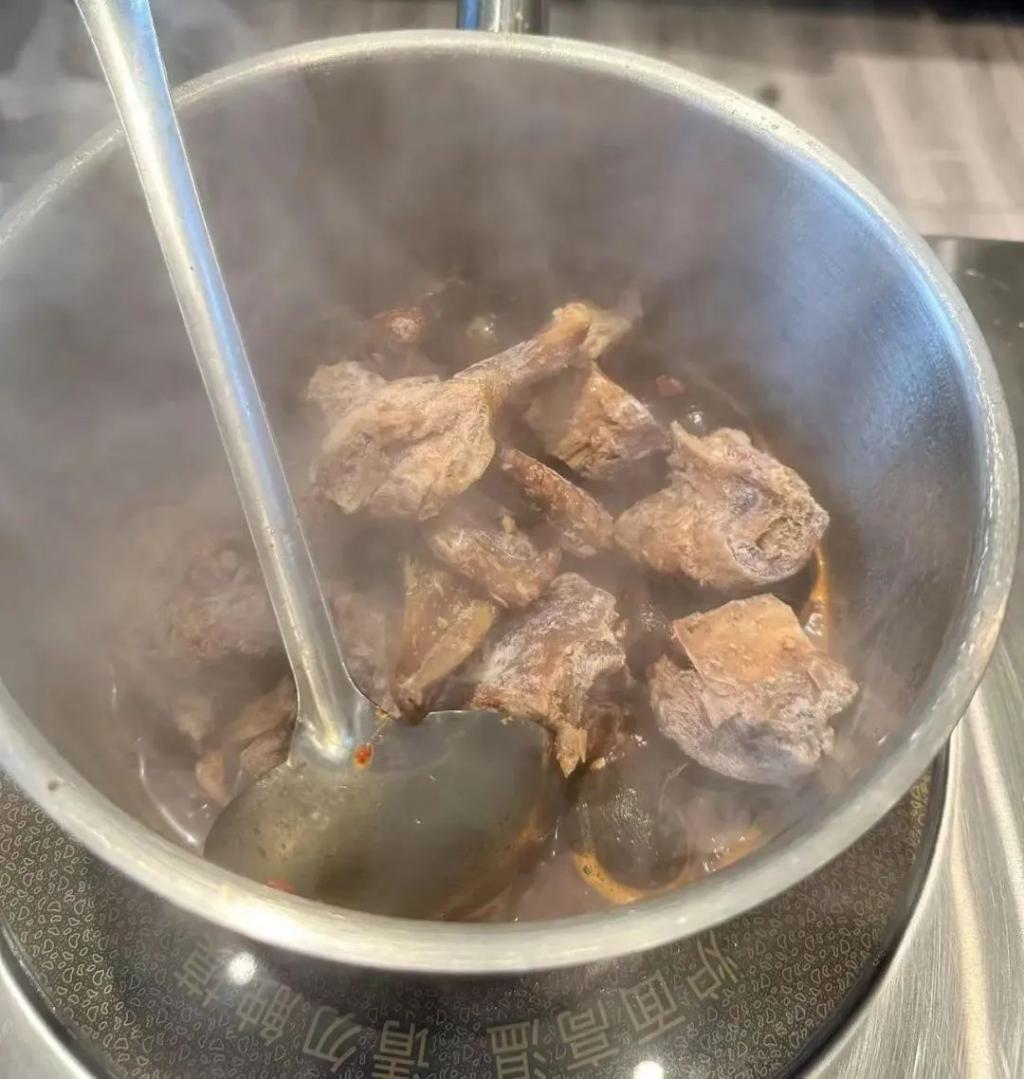 红餐网实地走访广州的一家黑鸭煲门店后也发现,门店有标榜 " 整鸭鲜卤 ",但实际上,工作人员是从冰箱中取出的袋装冻鸭肉,在炖煮时,甚至都没有解冻,便直接投入了锅中熬煮。可想而知,消费者的体验感会有多差。