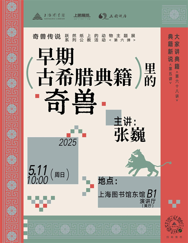 古希腊存世最早的典籍多以神话为主题,各式各样的动物(真实的和想象的)在其中占据了重要位置。本次讲座将从两方面来观察这些典籍里的动物,首先将讨论与几位主神关系密切的真实动物或者说他们的标志性动物,随后将从古希腊神话里挑选一些奇兽(想象的动物),说一说它们的故事和相关的典籍,分析它们的文化意义,并与古代中国典籍里的奇兽相互映照。