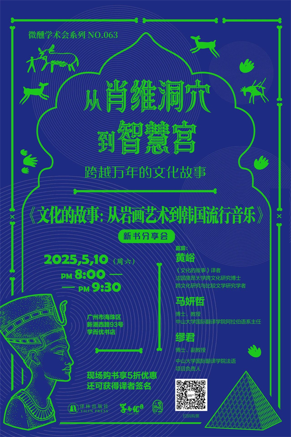 哈佛大学教授马丁·普克纳的新书《文化的故事:从岩画艺术到韩国流行音乐》,就像一趟穿越几千年文明的环球旅行,从肖维洞穴里的岩画,到智慧宫里的翻译运动;从玄奘走过的取经之路,到尼日利亚的戏剧和韩流偶像,这些听起来风马牛不相及的文化片段,在这本书里被同一个问题串成了一条主线:我们如何通过文化的交流,理解这个世界,理解他人,也理解我们自己。5月10日晚,《文化的故事》译者、跨文化研究与比较文学研究学者黄峪,中山大学国际翻译学院教授马妍哲、副教授缪君,将带领大家穿越历史长河,领略人类文明中的关键文化节点。