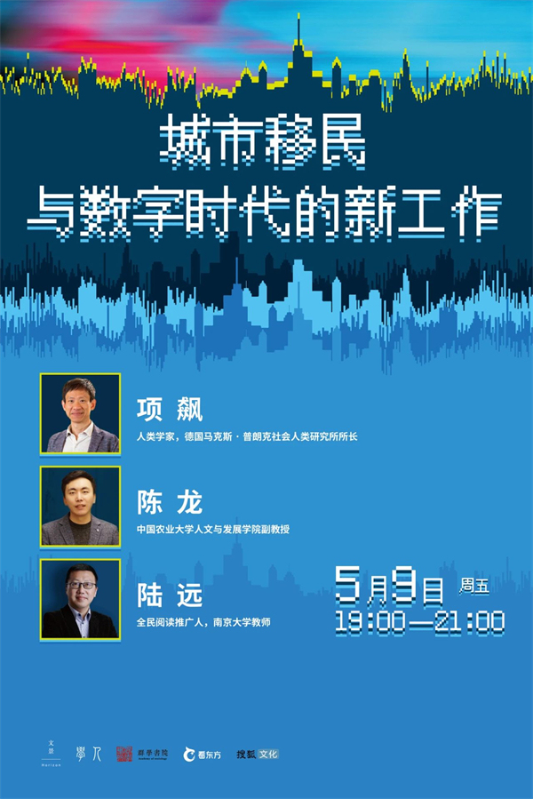 当全球化出现逆潮、城市化渐趋降温,不同时代背景下,城市移民的工作与生活有哪些异同?面对日新月异的技术发展,对大多数普通人而言,工作形态、就业环境发生了怎样的改变,又对我们的生活产生了何种影响? 5月9日晚,文景联合学人scholar、群学书院、看东方、搜狐文化,发起横跨欧美亚的三地连线对话,邀请著名人类学家、德国马克斯·普朗克社会人类学研究所所长项飙,中国农业大学人文与发展学院副教授、美国费正清中心访问学者陈龙,全民阅读推广人、南京大学教师陆远,由《数字疾驰》一书关注的外卖骑手切入,一起畅谈数字时代的城市、移民、工作,聊聊当下的变化,以及我们可以期待什么样的未来。