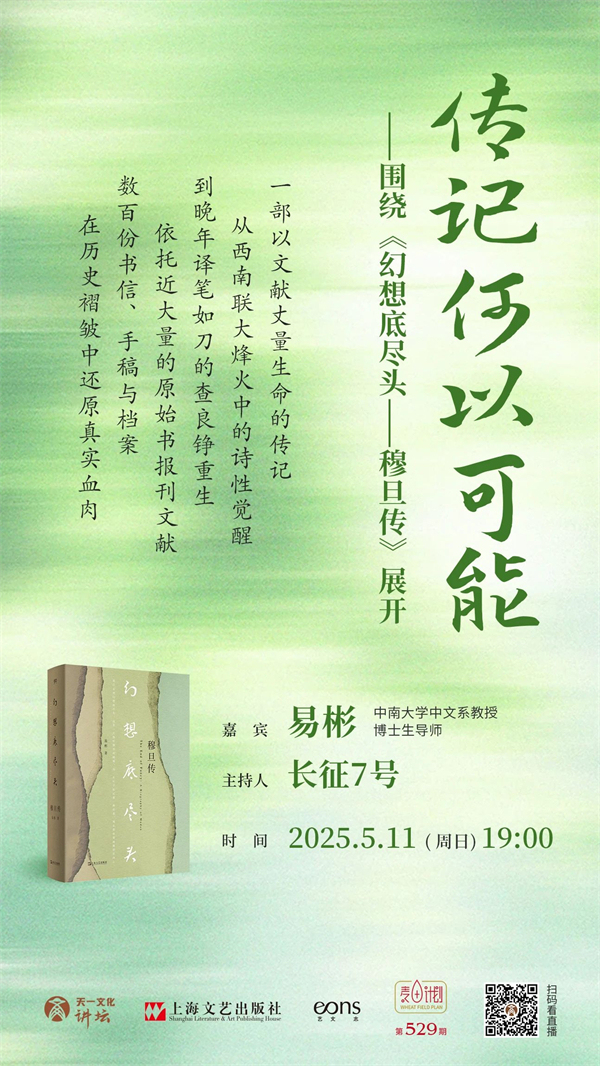 5月1日晚,《幻想底尽头:穆旦传》作者易彬将做客天一文化讲坛,从这本传记出发,谈谈穆旦传记的写作与穆旦研究。