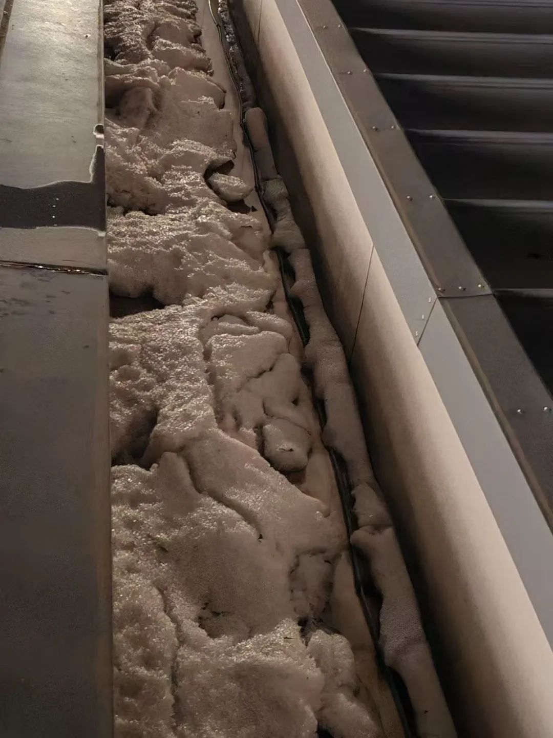 随即,机场立即启动用于冬季的屋面融雪电伴热加热系统实施除冰,工作人员同步登临屋面及时清理排水槽内冰块,在当晚8时40分基本实现疏水止漏。根据现场查看和监控画面显示:当时大量冰雹瞬时集中降在T5航站楼北一、二指廊区域,T5航站楼南部三条指廊及T2、T3航站楼屋面均未发现冰雹。