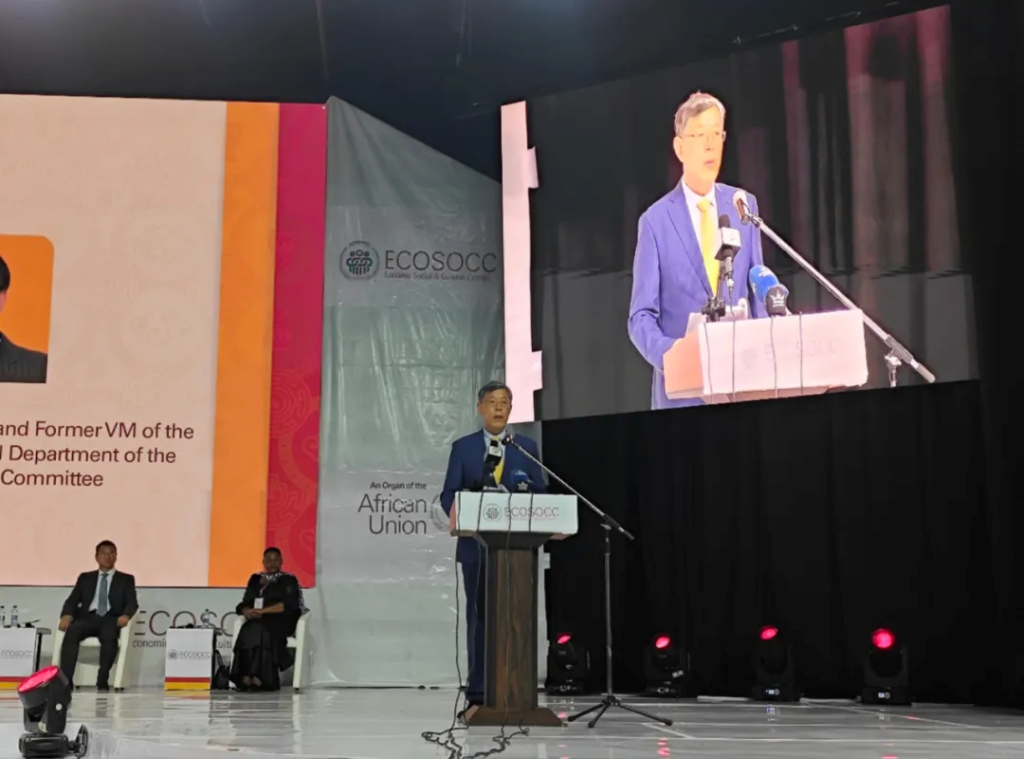 赞比亚副总统纳卢曼戈、津巴布韦驻赞比亚大使查拉姆巴、非盟经社文理事会主席西索科、非盟经社文理事会秘书长卡鲁出席对话会并致辞。非盟委员会副主席哈达迪视频致辞。