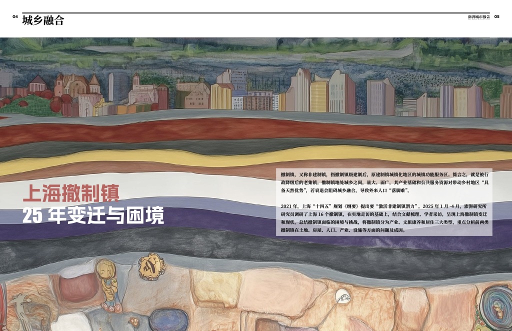 《澎湃城市报告》总第23期《上海撤制镇25年变迁与困境》已于4月25日发布,本报告包含《上海撤制镇25年变迁与困境》、《成为“生活中心”:商业综合体业态更新调研》、《绿色溢价的虚与实》和《升级与促新:长三角41城2025政府工作报告详读》4份子报告。
