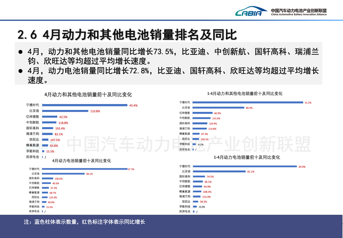 同期贡献动力电池销量最多的仍是宁德时代,跟随其后的是比亚迪、国轩高科。上月,国内动力电池整体销量同比增长72.8%,销量前十的企业中有比亚迪、国轩高科、欣旺达的增速超过平均增长速度。其中,国轩高科增速最快,达190.6%。