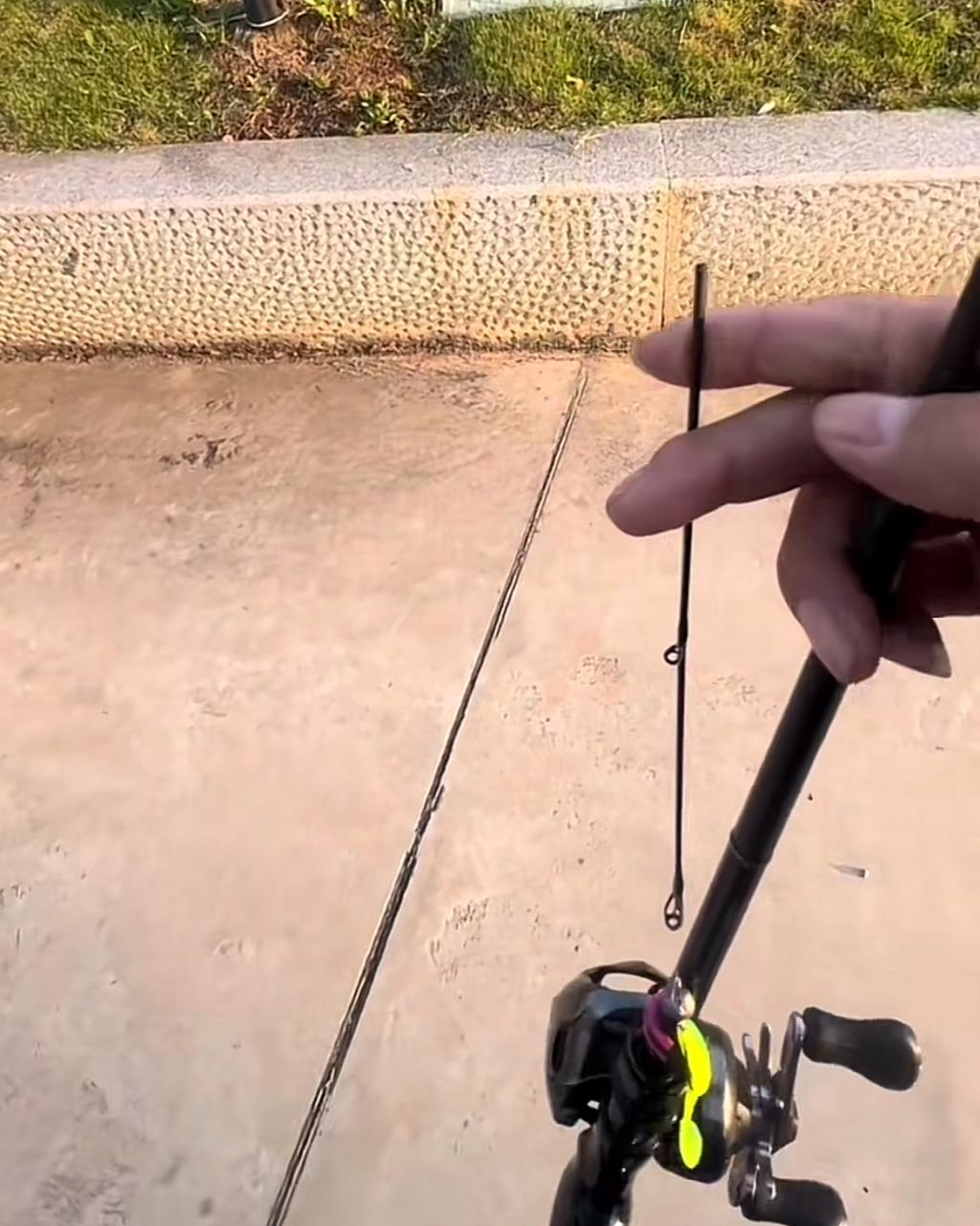 为了救人,谭先生的钓竿竿梢断了。网络截图。