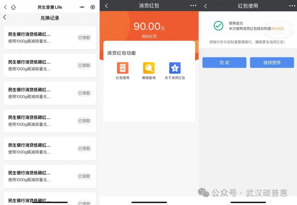 据媒体报道,4 月 28 日,武汉市民魏女士成功用累积的碳普惠减排量抵扣 90 元利息,成为首个享受 " 绿色行为变金色收益 " 的用户。