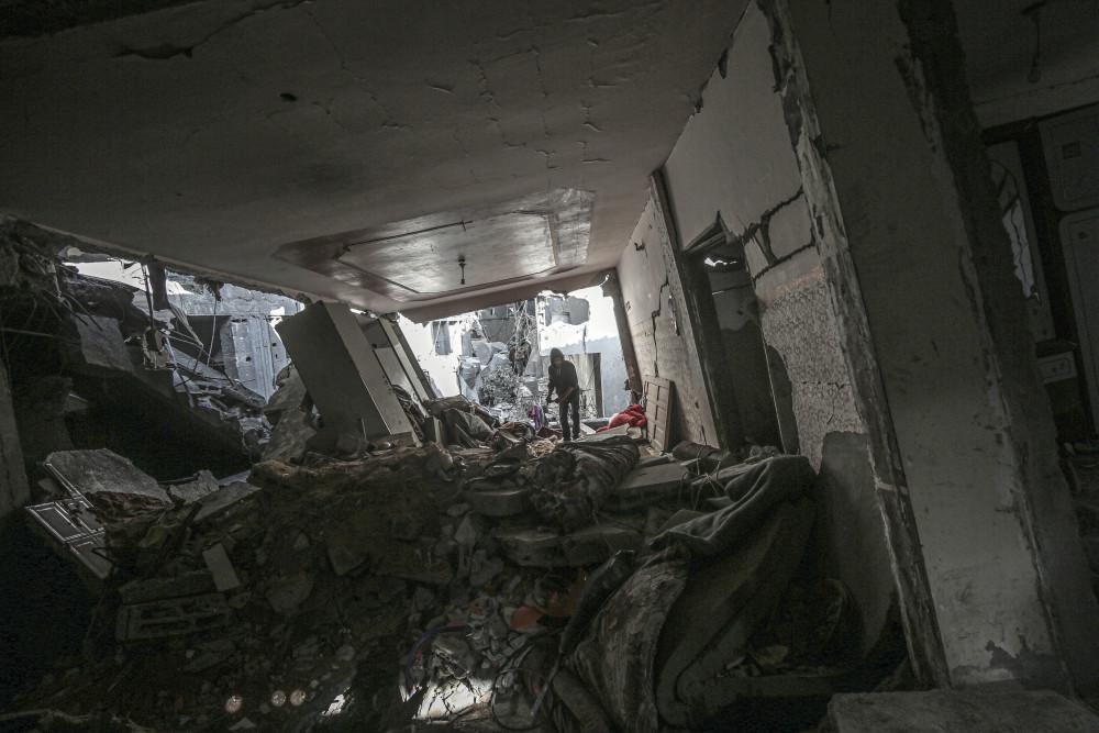 4 月 26 日,当地民众在加沙城查看以军袭击后的废墟。新华社发(马哈茂德 · 扎基摄)