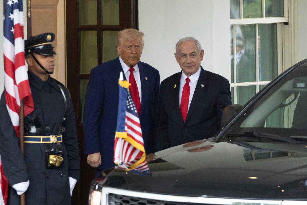 4 月 7 日,美国总统特朗普在华盛顿白宫迎接到访的以色列总理内塔尼亚胡。新华社记者胡友松摄