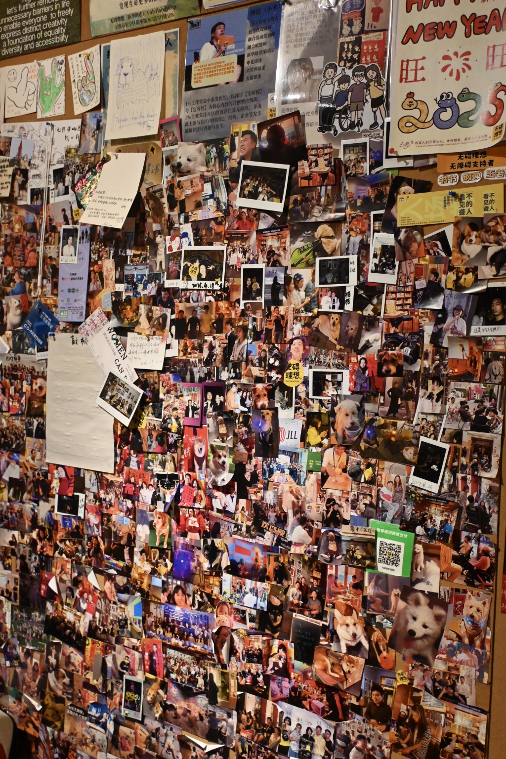 住在附近的居民晓阳,因为去年担任非营利地方生活志《新华录》的主编工作而与酒馆结缘,编辑部在创作的几个月里常来酒馆开会。毛毛、小米都是编辑团队的一份子,他们一起讨论,在杂志中加入了无障碍科普板块;杂志里的所有照片是由听障者小凡拍摄的。酒馆里的多元融合感吸引着晓阳:有时候他见一桌伙伴的轮椅在一旁排开,旁边一桌聋人在打纸牌游戏UNO。晓阳发现很多残障者性格热烈,和他们喝High了会互开玩笑,兴之所至大家会在门口的白板上涂鸦。