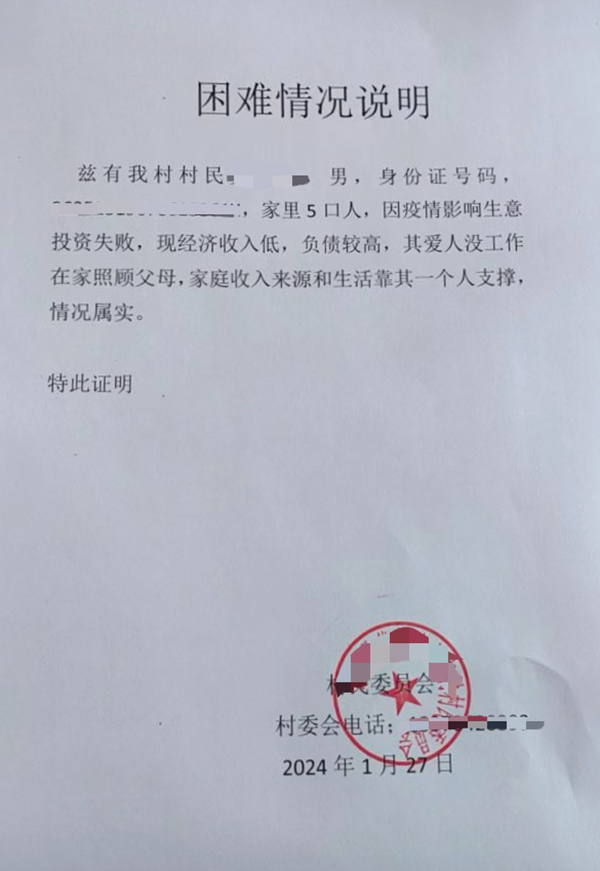 孙某团伙伪造的困难证明。 上海市公安局供图